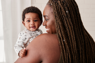- Baby anziehen: Legen Sie Ihrem Baby eine Windel an, und ziehen Sie ihm dann etwas Sauberes und Bequemes an.