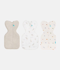Dieses Bundle enthält 1 x Swaddle Up™ Pucksack 1.0 TOG Baumwolle Naturmeliert, 1 x Swaddle Up™ Pucksack 1.0 TOG Baumwolle Weiß Wolken Häschen and 1 x Swaddle Up™ Pucksack 1.0 TOG Baumwolle Creme Dino-Schnarch